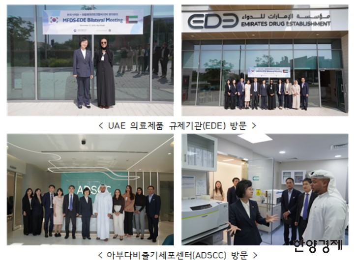 식품의약품안전처는 18일(현지 시간) UAE 의료제품 규제기관(EDE)과 바이오헬스 분야 포괄적 협력에 관한 양해각서(MOU)를 체결했다고 밝혔다. 이 자리에는 이재명 대통령과 모하메드 빈 자이드자이드 알 나하얀 UAE 대통령 등 양국 정상이 참석했다.