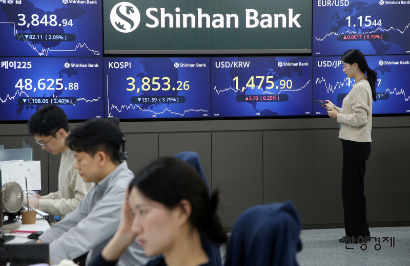 21일 한국거래소에 따르면 코스피는 전 거래일 대비 151.59포인트(3.79%) 내린 3853.26으로 마감했다. 3900선이 붕괴된 것은 지난달 23일 이후 근 한 달 만이다. 장 초반부터 낙폭이 컸다. 지수는 3,908.70으로 출발해 개장 직후 4% 넘게 빠지며 약세를 이어갔다.