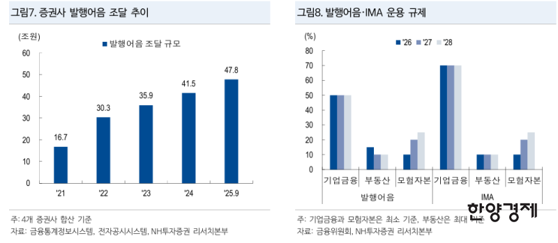 발행어음 인가사는 자기자본의 2배 규모 자금 조달이 가능해진다. 이를 통해 기업대출, 인수금융, 프로젝트파이낸싱(PF), 대체투자 등 다양한 IB 자산 운용에 나서 수익 구조 다변화를 기대할 수 있다.