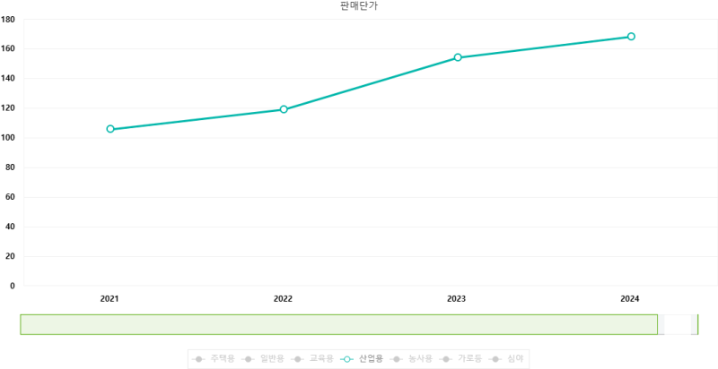 전력통계정보시스템에 따르면 산업용 전기요금 판매단가는 2021년 킬로와트시당(㎾h) 105원에서 지속 상승했다. 지난해 전기요금 판매단가는 킬로와트시당 168원으로 2021년 대비 37.5% 올랐다.