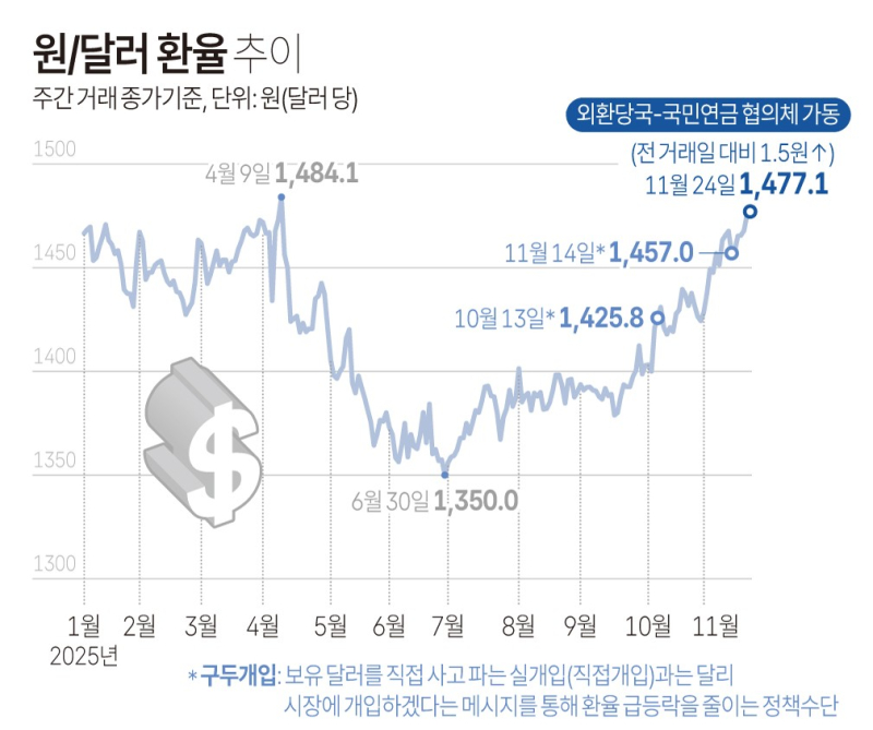 이는 결국 국내에 있는 달러화가 해외로 유출되는 상황이 이어질 것이라는 분석이다. 개인·기관의 해외주식 매수가 구조적으로 확대, 대미투자 합의로 수출기업 환전(달러 매도) 지연, 중국·일본과 달리 한국은 ‘해외투자 중심 경제’로 재편되는 상황이 원인으로 지목된다.